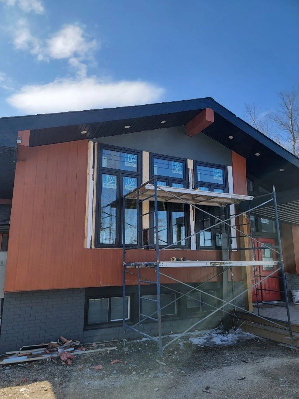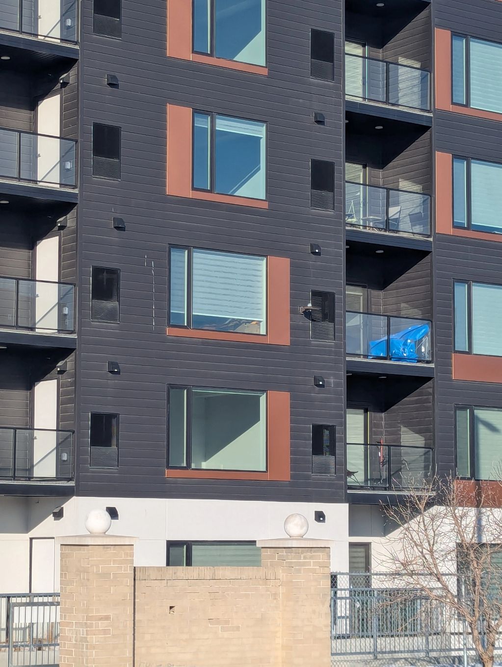 We made the panels around each window. This creates a unique and striking look against the dark back drop of the building.